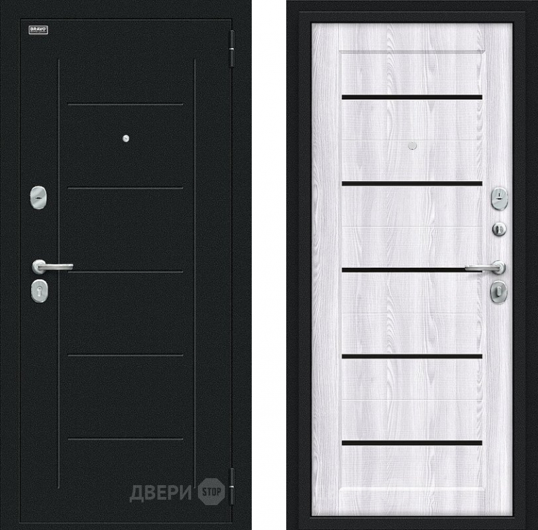 Входная металлическая Дверь Bravo Борн Букле черное/Riviera Ice в Реутове 860х2050 мм