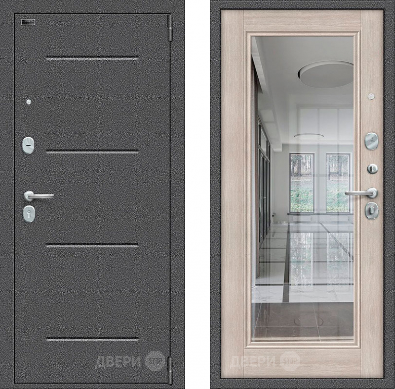 Входная металлическая Дверь Bravo Porta S-2 104/П61 с зеркалом Капучино в Реутове 860х2050 мм