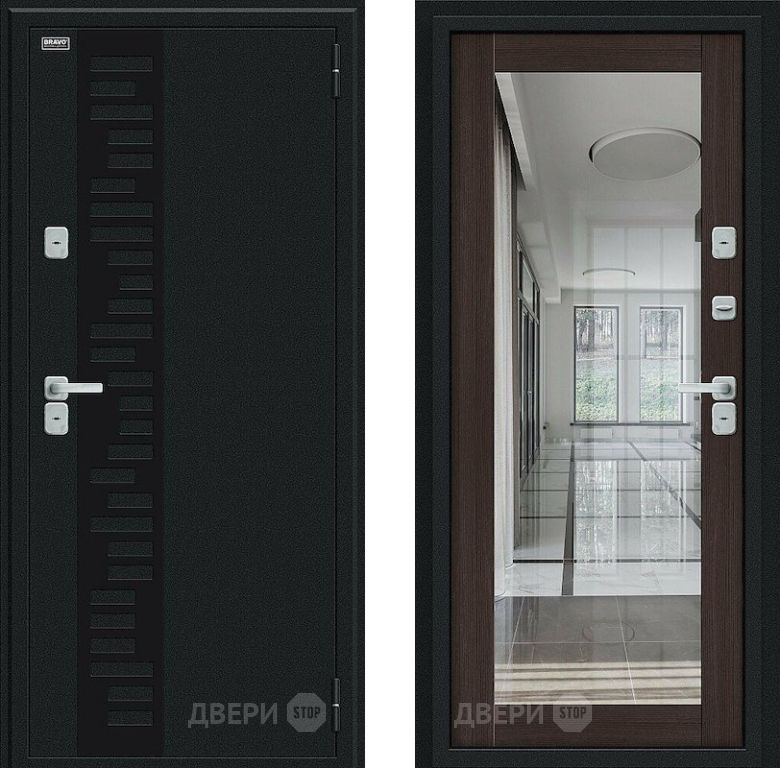 Входная металлическая Дверь Bravo Thermo Флэш Декор Букле черное/Wenge Veralinga в Реутове 860х2050 мм