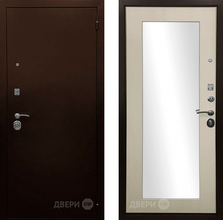 Входная металлическая Дверь Ратибор Оптима 3К зеркало Лиственница беж в Реутове 860х2050 мм