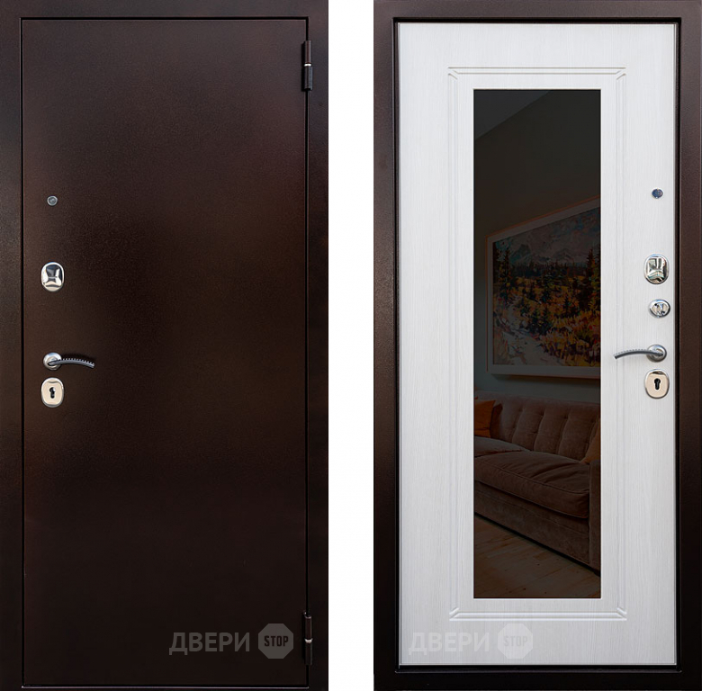 Входная металлическая Дверь Снедо Патриот зеркало Белая Лиственница в Реутове 860х2050 мм