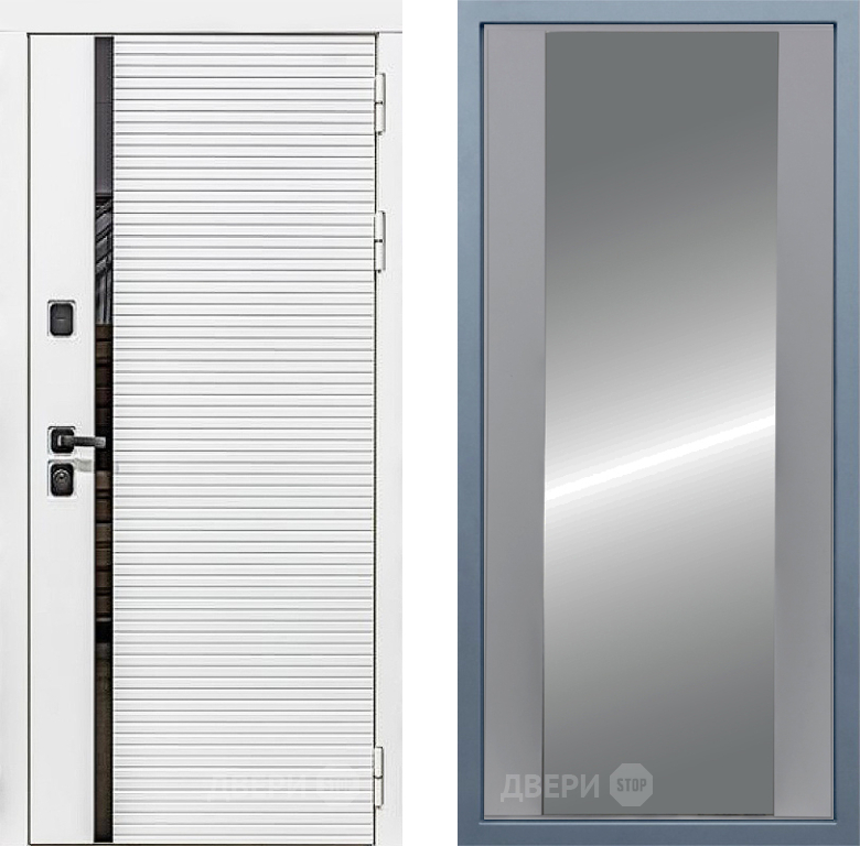 Входная Дверь Дива МХ-45 Белая STR Д-15 Зеркало Силк Маус 960x2050 мм