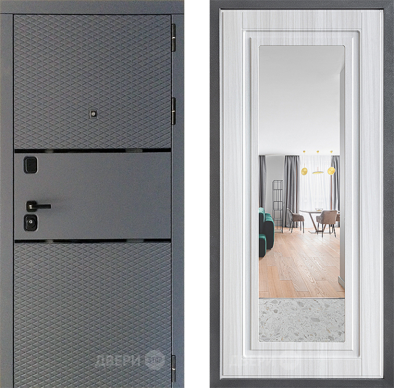 Входная Дверь Дверной континент Диамант Дизайн ФЛЗ Зеркало Сандал белый 860x2050 мм