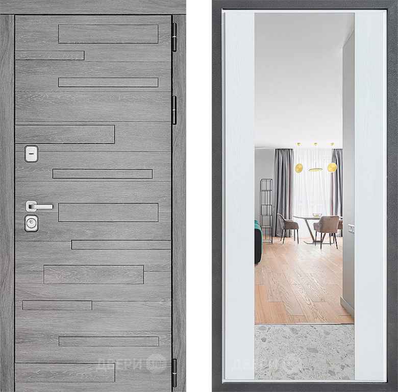 Входная Дверь Дверной континент ДК-10 ФЛЗ-1 Зеркало Белое дерево 860x2050 мм