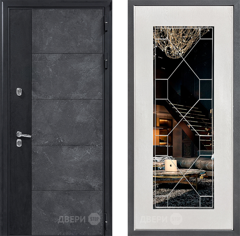 Входная Дверь Дверной континент ДК-15 Бетон ТЕРМО ФЛ-Тиффани Зеркало Белое дерево 860x2050 мм