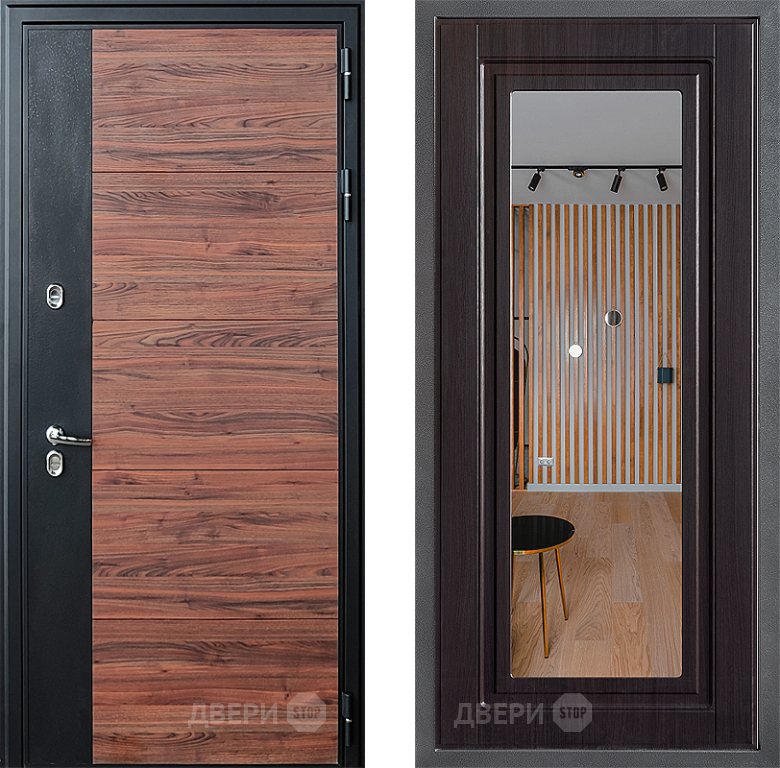 Входная Дверь Дверной континент ДК-15 Красное Дерево ТЕРМО ФЛЗ Зеркало Венге 860x2050 мм