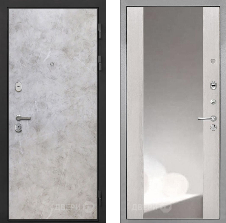 Входная Дверь Интекрон (INTECRON) Гектор Мрамор Светлый ФЛЗ-516 Зеркало Сосна белая 960x2050 мм