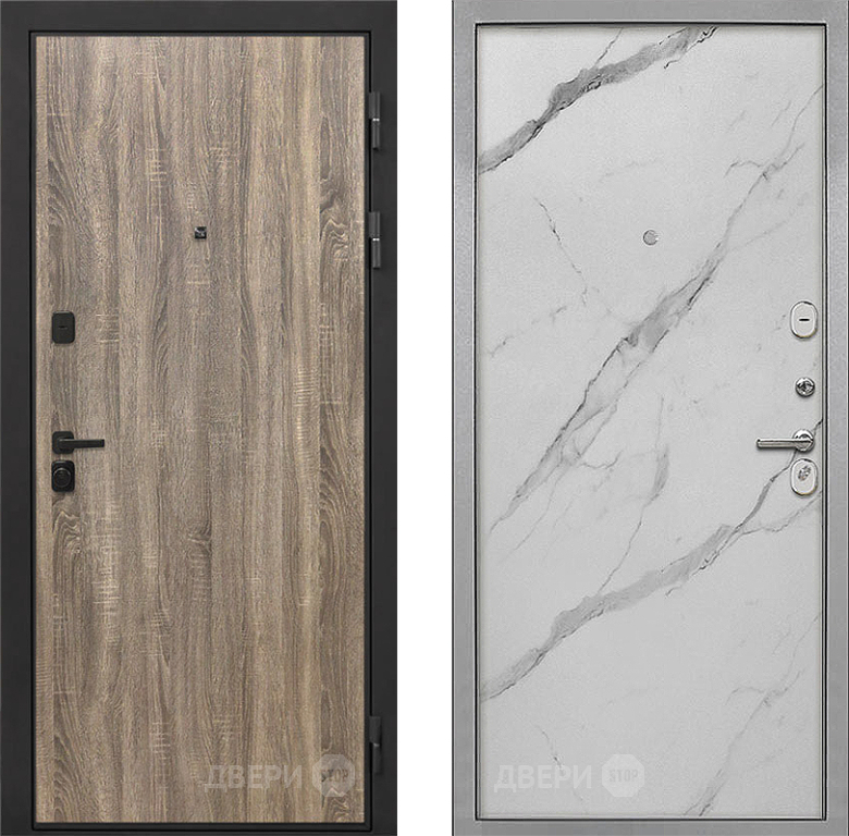 Входная Дверь Интекрон (INTECRON) Профит Black Дуб Турин Гладкая Мрамор натуральный арктик 860x2050 мм