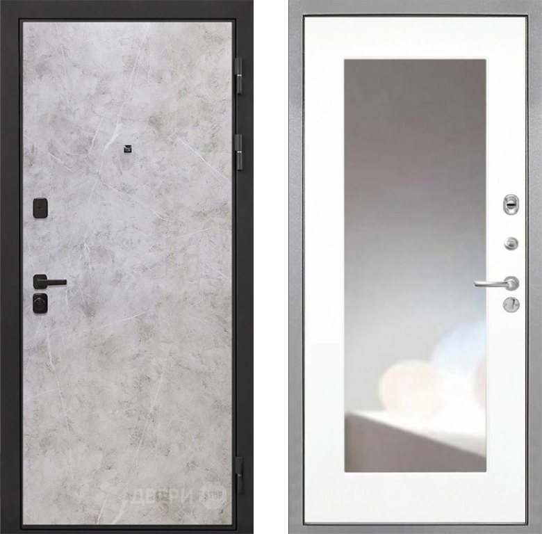 Входная Дверь Интекрон (INTECRON) Профит Black Мрамор Светлый ФЛЗ-120-М Зеркало Белый матовый 860x2050 мм