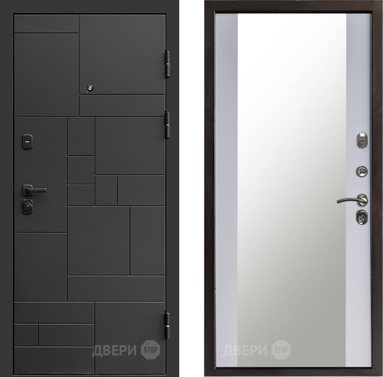 Входная Дверь Престиж Kvadro Зеркало Белый софт 860x2050 мм