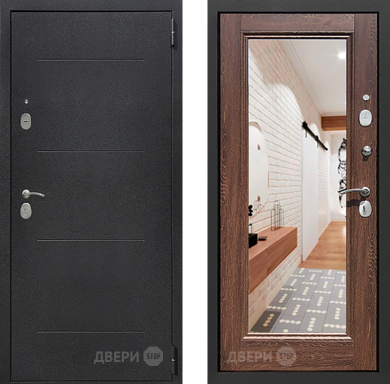 Входная металлическая Дверь Престиж 100 с зеркалом Шелк/Дуб филадельфия коньяк в Реутове 860х2050 мм