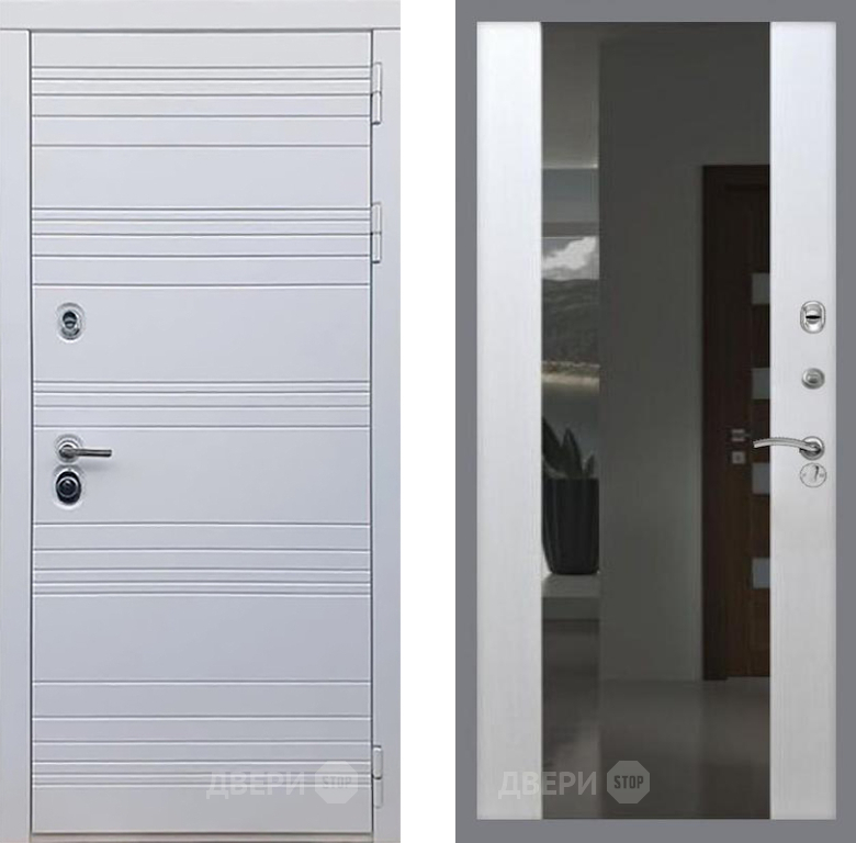 Входная Дверь Рекс (REX) 14 Силк Сноу СБ-16 с Зеркалом Лиственница беж 860x2050 мм