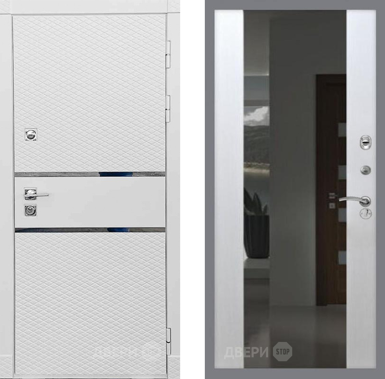 Входная Дверь Рекс (REX) 15 Силк Сноу СБ-16 Зеркало Белый ясень 860x2050 мм