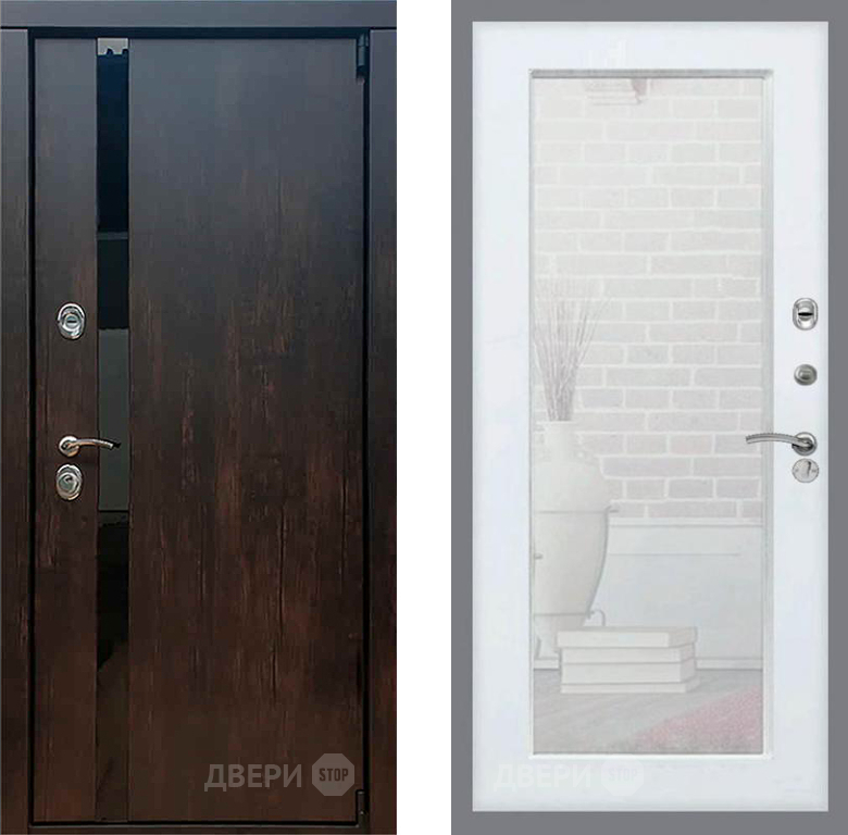 Входная Дверь Рекс (REX) 26 Зеркало Пастораль Силк Сноу 860x2050 мм