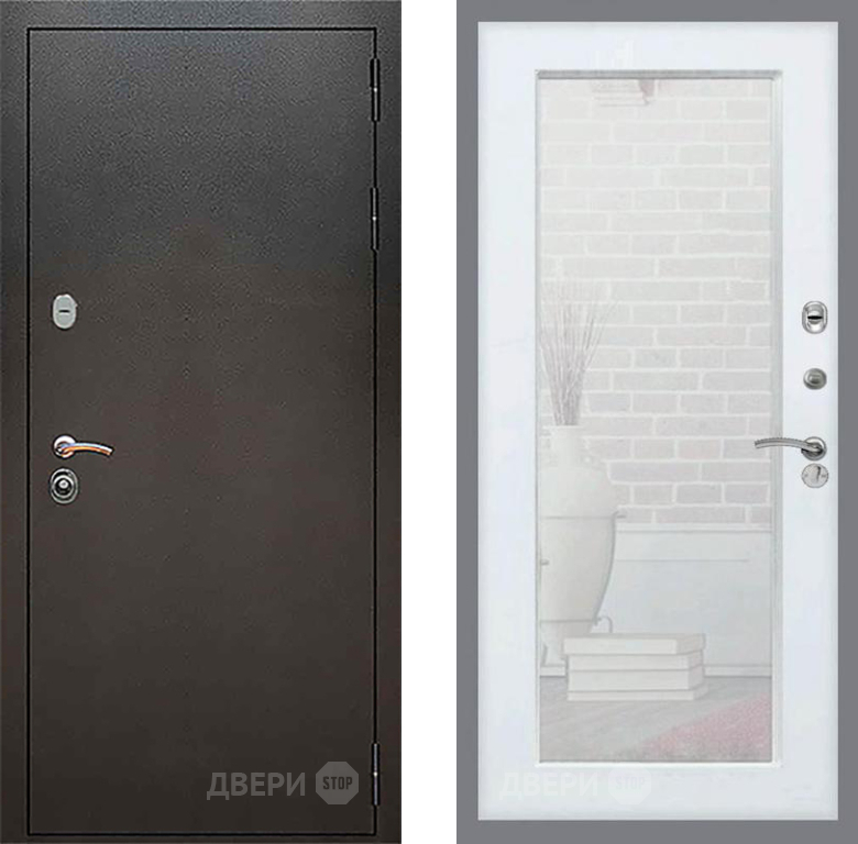 Входная Дверь Рекс (REX) 5 Серебро Антик Зеркало Пастораль Белый ясень 960x2050 мм