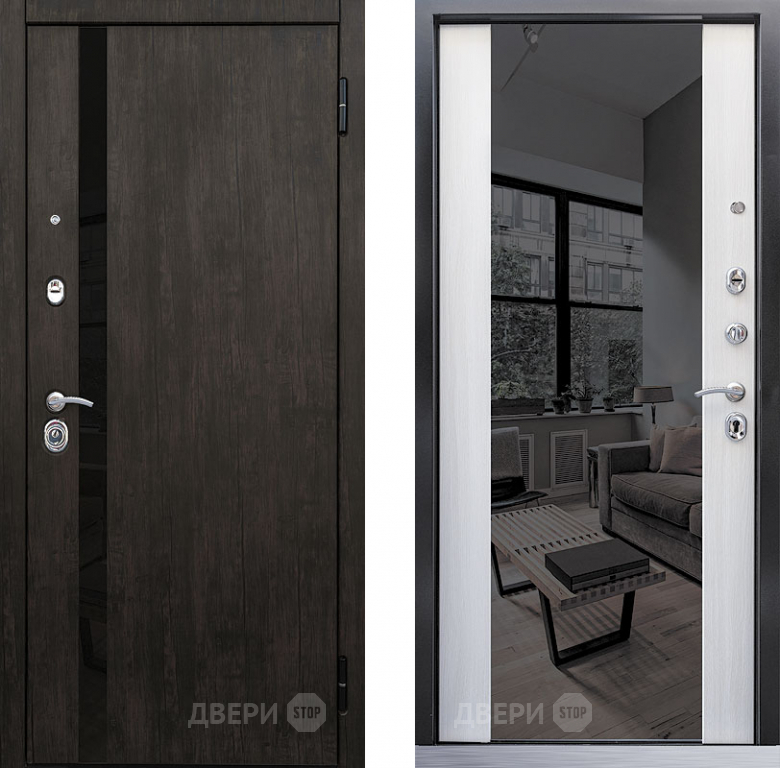 Входная металлическая Дверь Премьер зеркало тиковое дерево/лиственница белая в Реутове 860х2050 мм