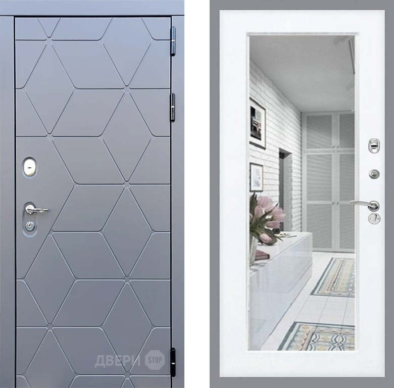 Входная Дверь Стоп КОСМО Зеркало Силк Сноу 860x2050 мм