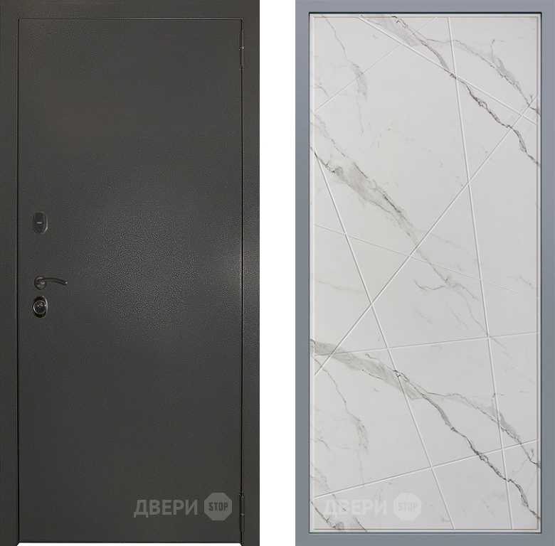 Входная Дверь Заводские двери Эталон 3к антик серебро Флитта Мрамор белый 860x2050 мм