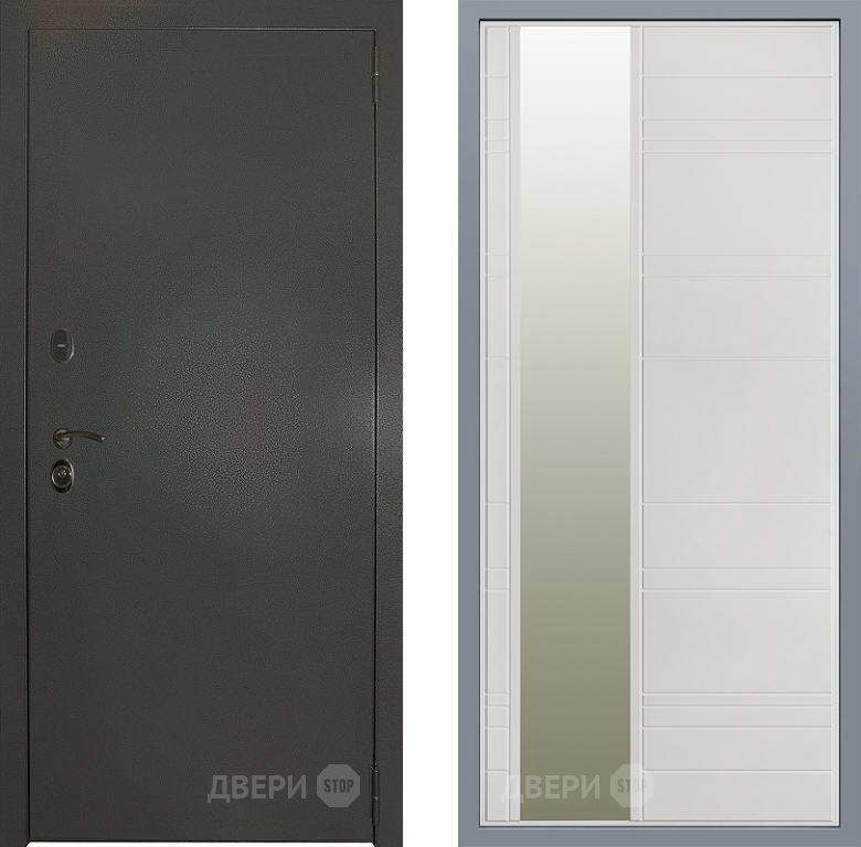 Входная Дверь Заводские двери Эталон 3к антик серебро Зеркало Лира Белый софт 860x2050 мм