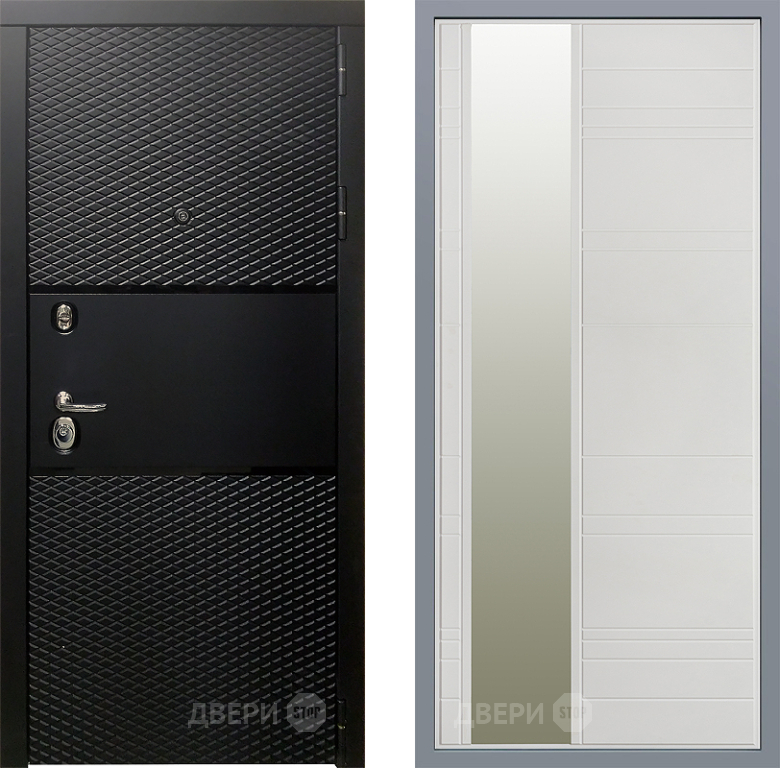 Входная Дверь Заводские двери Тефлон Зеркало Лира Белый софт 960x2050 мм